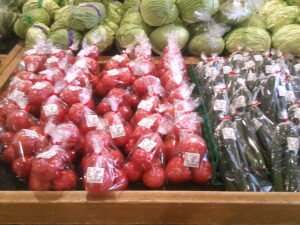 また、白菜、大根、キャベツ、ブロッコリー、カリフラワーなど冬の野菜も並んでいます。ここの所、寒さが増したので野菜の甘味、うま味もアップしています。季節の野菜を食べて、毎日元気に過ごしましょう!