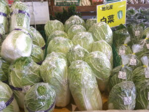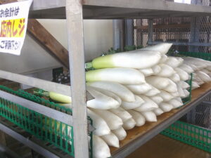また、本日も東松山市で採れた新鮮野菜がたくさん並んでいますよ。白菜、大根、ねぎ、ブロッコリーなど!しっかり食べて風邪予防に努めましょう!