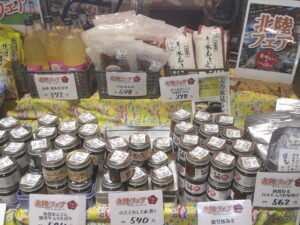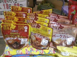 店内にて、「北海道フェア」を開催中です!富良野市場のビーフシチューや北海道味噌バター鍋の素、ポテトチップや札幌みそラーメンなど、並んでおります。ぜひ、北海道の味をご堪能して下さい!