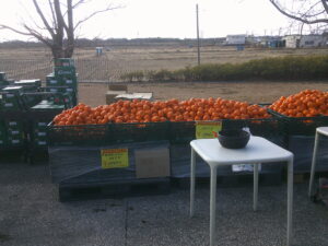 今日から30日まで、当直売所は9時開店となります。お正月用の切花や、のし餅の販売。本日は外売りコーナーにてみかんの大売出しを行っていますよ。寒い中ですが、ぜひ東松山直売所へお越し下さい。皆様の御来店をお待ちしております!