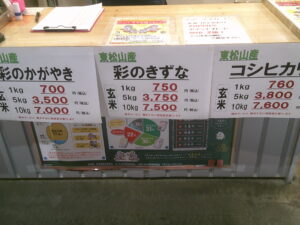 また、地元産のお米、コシヒカリ、彩のきずな、彩のかがやきも販売してます。