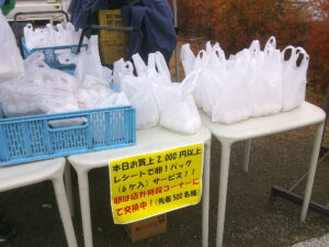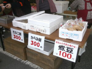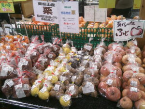 今日は、年末感謝祭を開催中です!外売りコーナーにて、農協女性部のもち類の、東松山市名物やきとり、たい焼き屋台、季節の果物販売を行っております。また、本日2,000円以上お買い上げで、たまご1パックプレゼントしていますよ。
