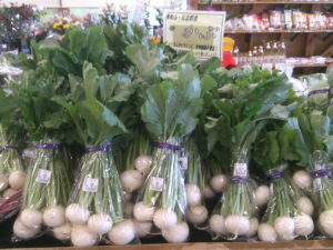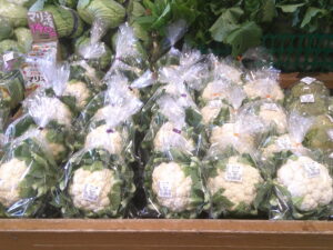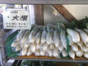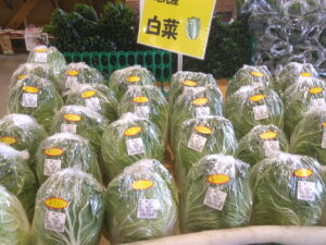 野菜も豊富です。白菜、大根、ブロッコリー、カリフラワーなど、冬物野菜が並んでいますよ。