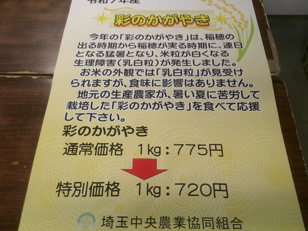 今年の「彩のかがやき」は、連日の猛暑のため、米粒が白くなる生理障害が発生しました。