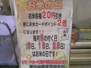 また、18日日曜日は、8の付く日で「お米の日」です。