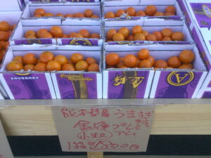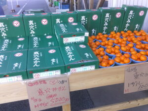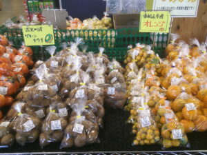本日は外売りコーナーにて、みかんの販売を行っております。小粒なみかんですが、甘さがギュッと詰まっています。ぜひ、お立ち寄り下さい。