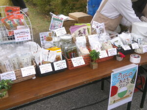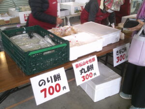店舗外売りコーナーは、農協女性部の手作りもち類の販売!また、ごはんのお供フェアや調味料の特売コーナー!