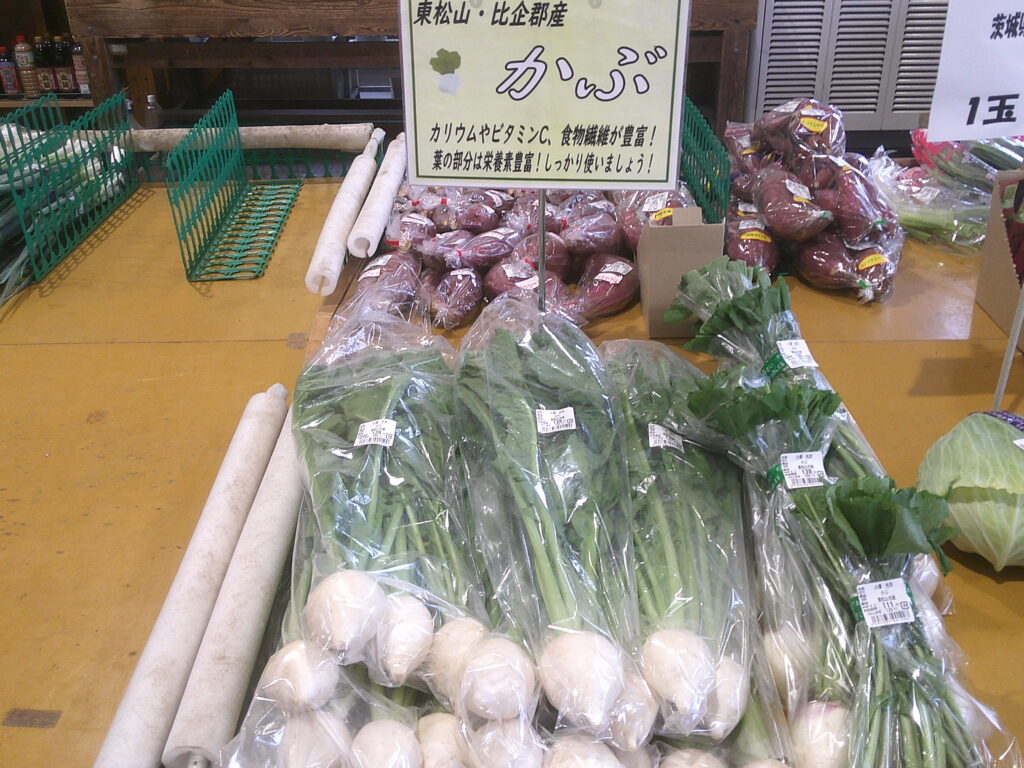 地元産野菜も、かぶが初入荷しました。葉っぱの部分もやわらかくて、塩もみにしたり、お味噌汁に入れてもおいしいです。