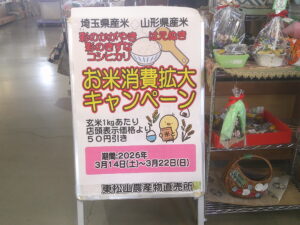 外売りコーナーも賑やかに、楽しいイベントを開催します!今度の土日はぜひ、東松山直売所へお越し下さい!