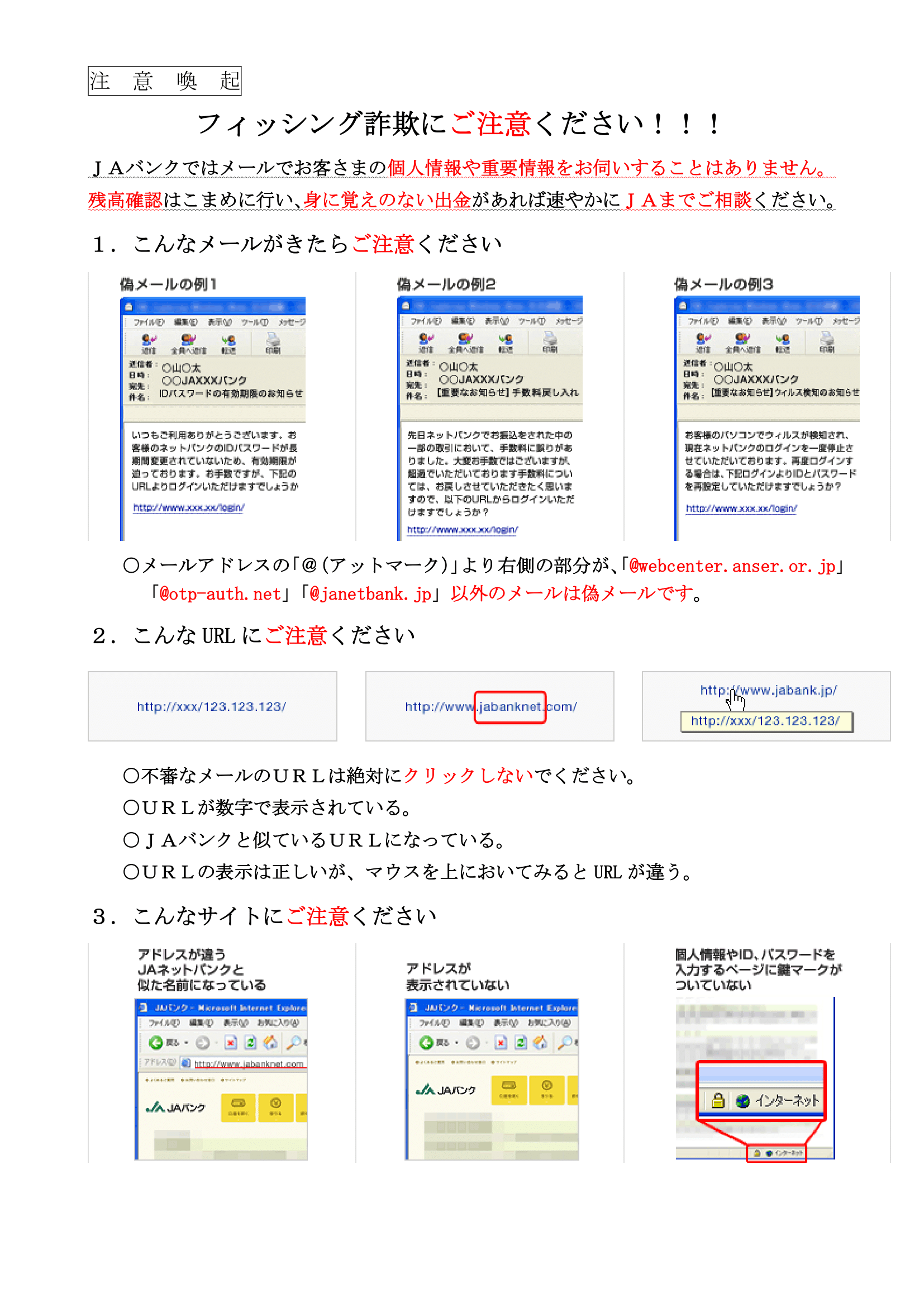 フィッシング詐欺にご注意ください!!!