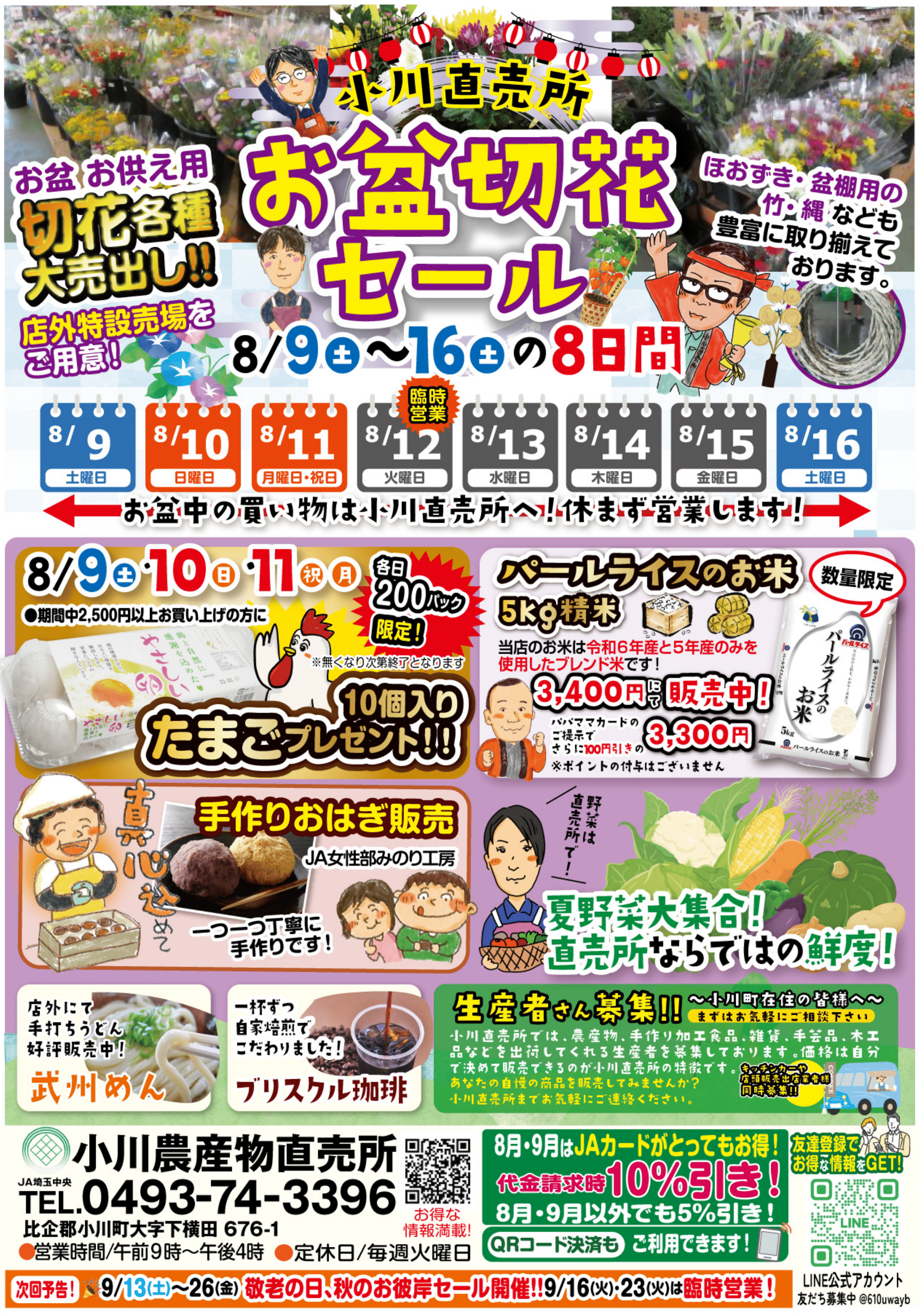 小川直売所 8/9(土)~8/16(土)「お盆切花セール」開催!