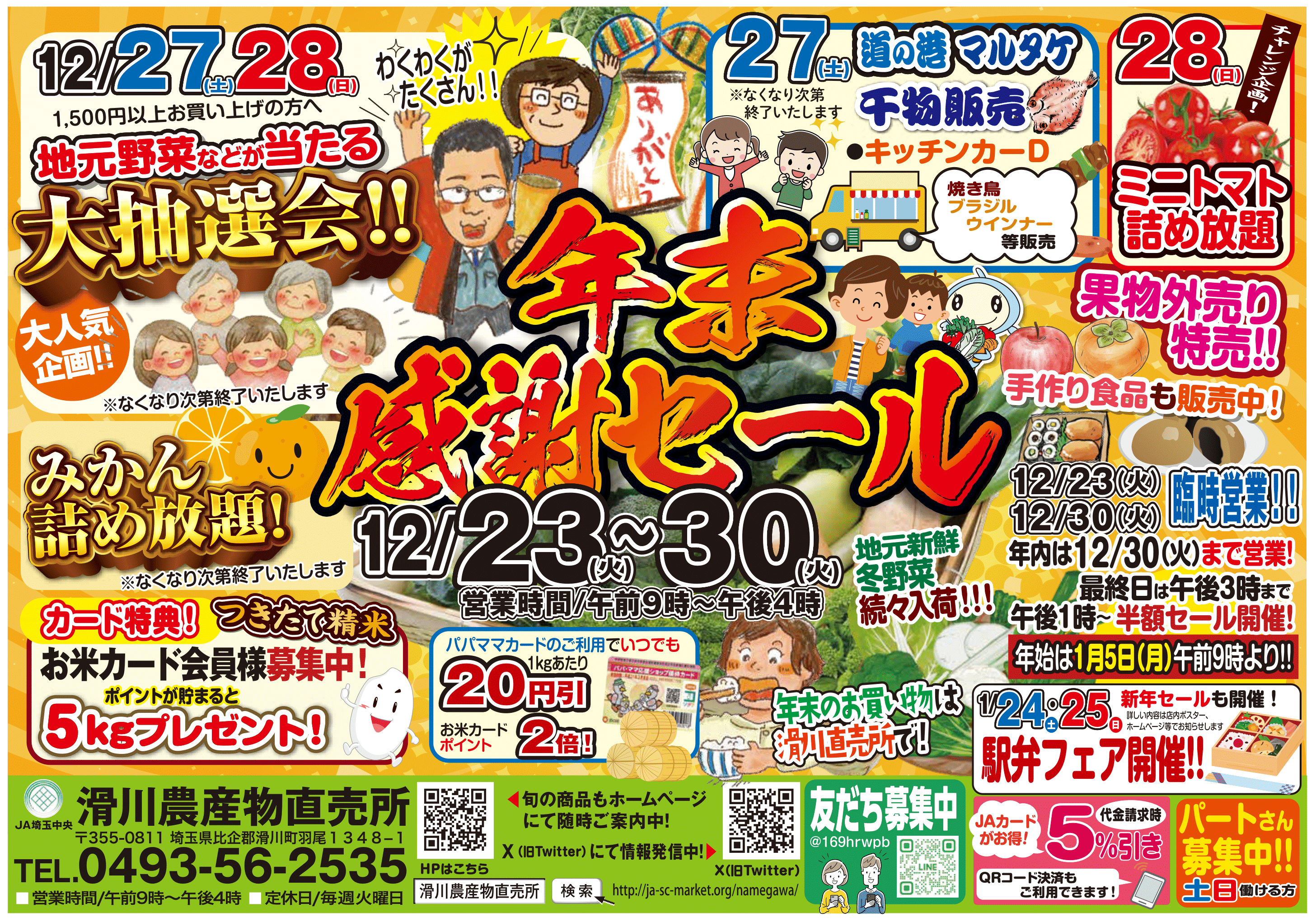滑川直売所  12/23(火)~12/30(火)「年末感謝セール」開催!