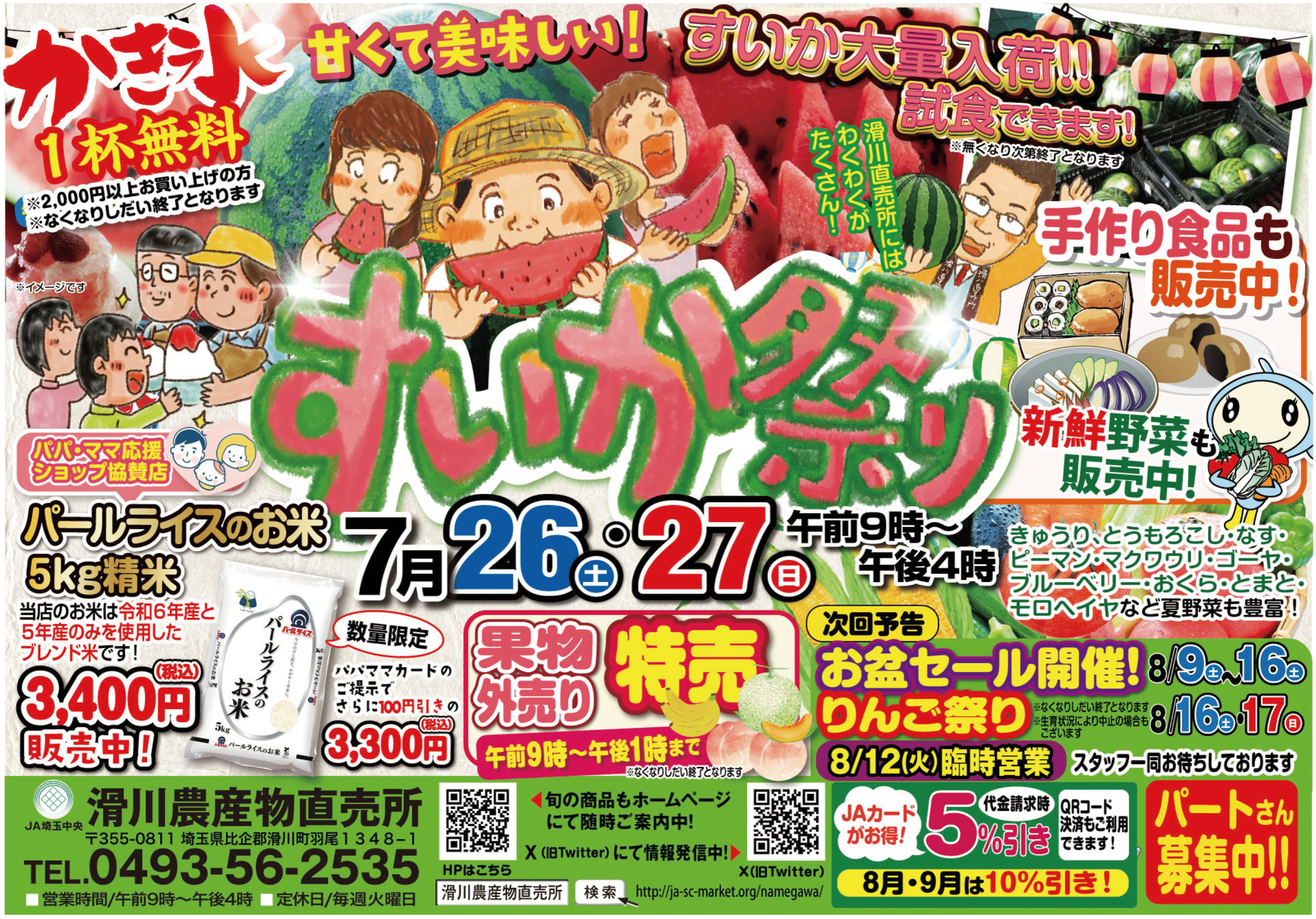 滑川直売所  7/26(土)~7/27(日)「すいか祭り」開催!