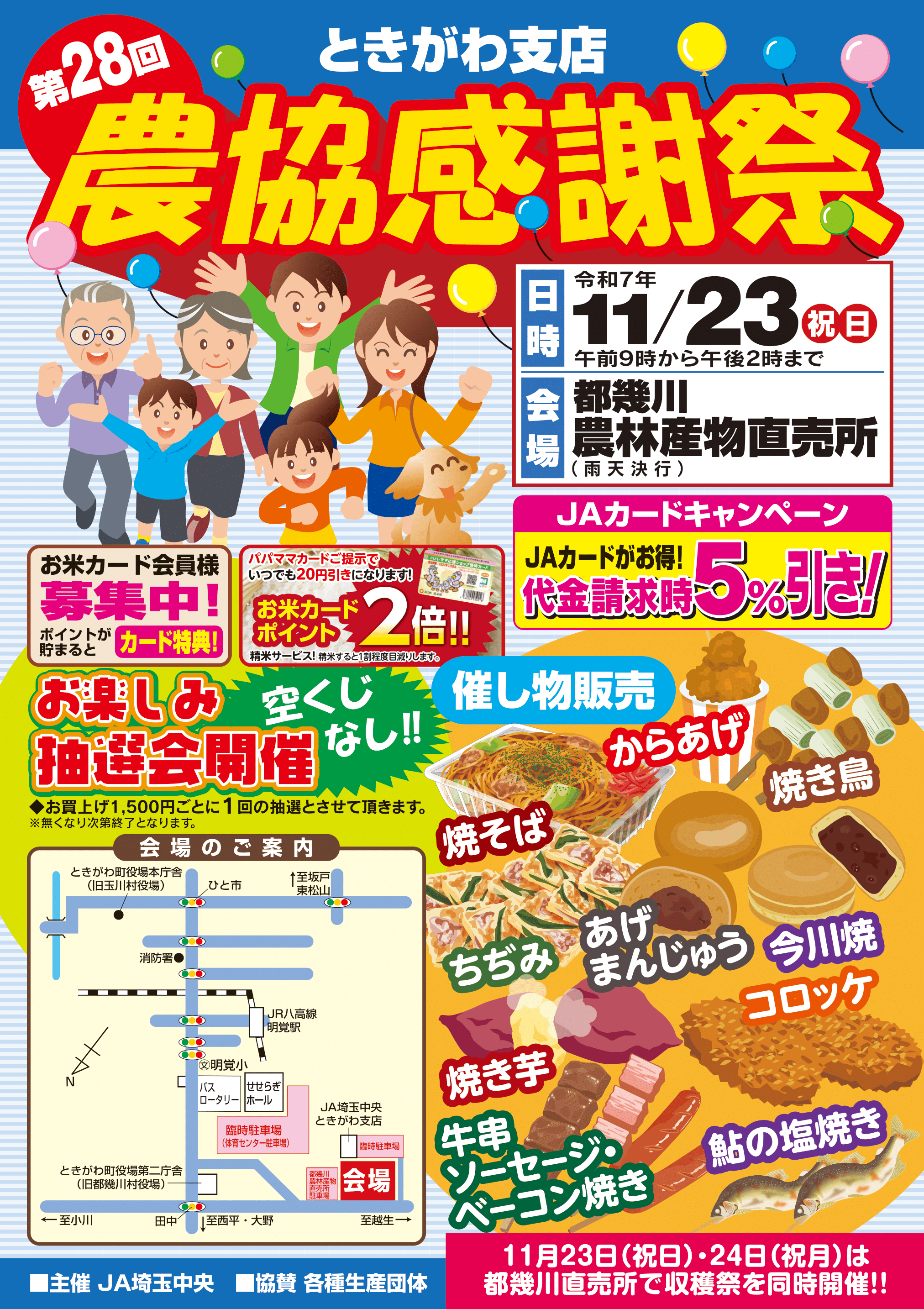 11/23(日)「ときがわ支店第28回農協感謝祭」開催!