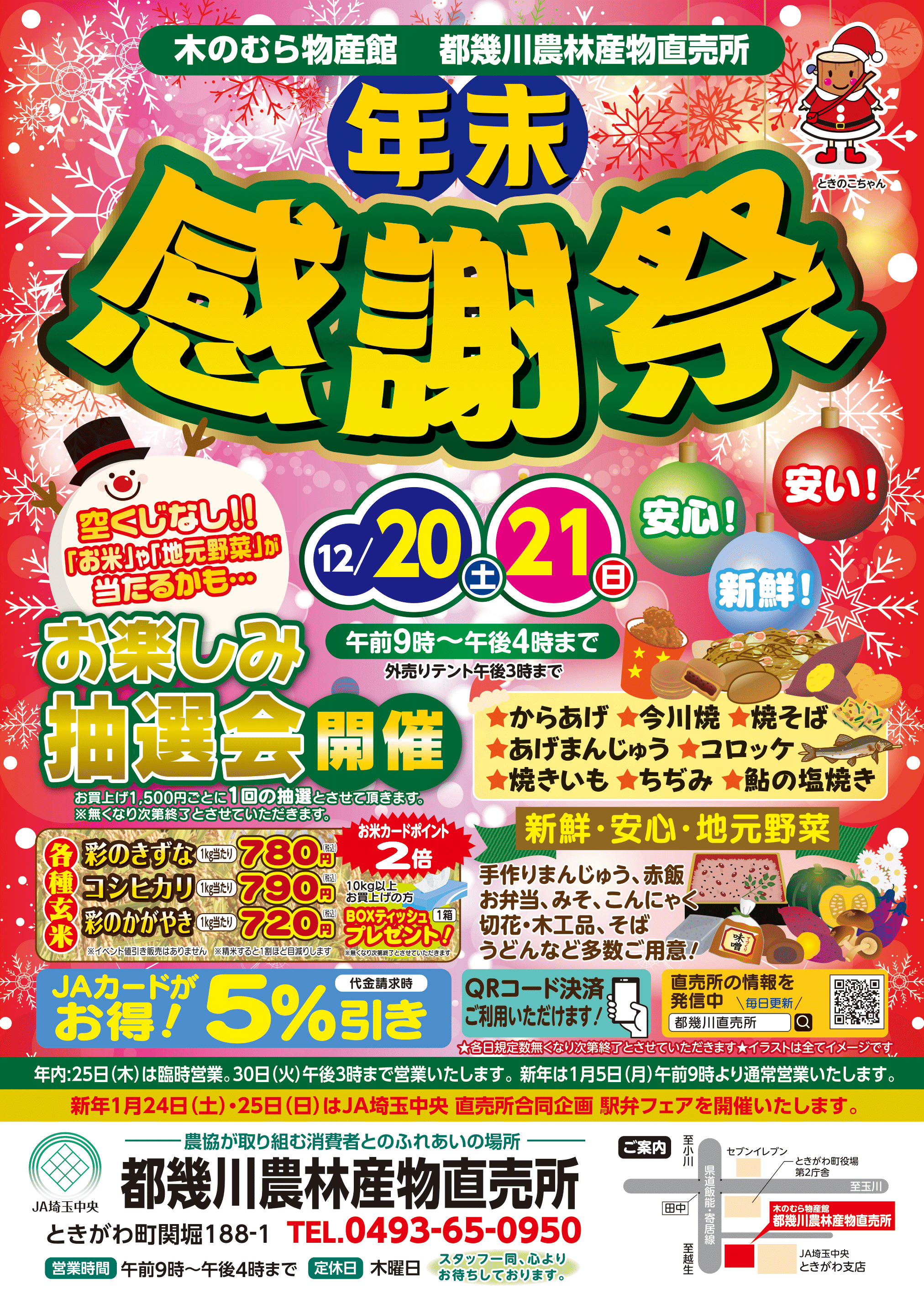 - 都幾川直売所 12/20(土)~12/21(日)「年末感謝祭」開催!