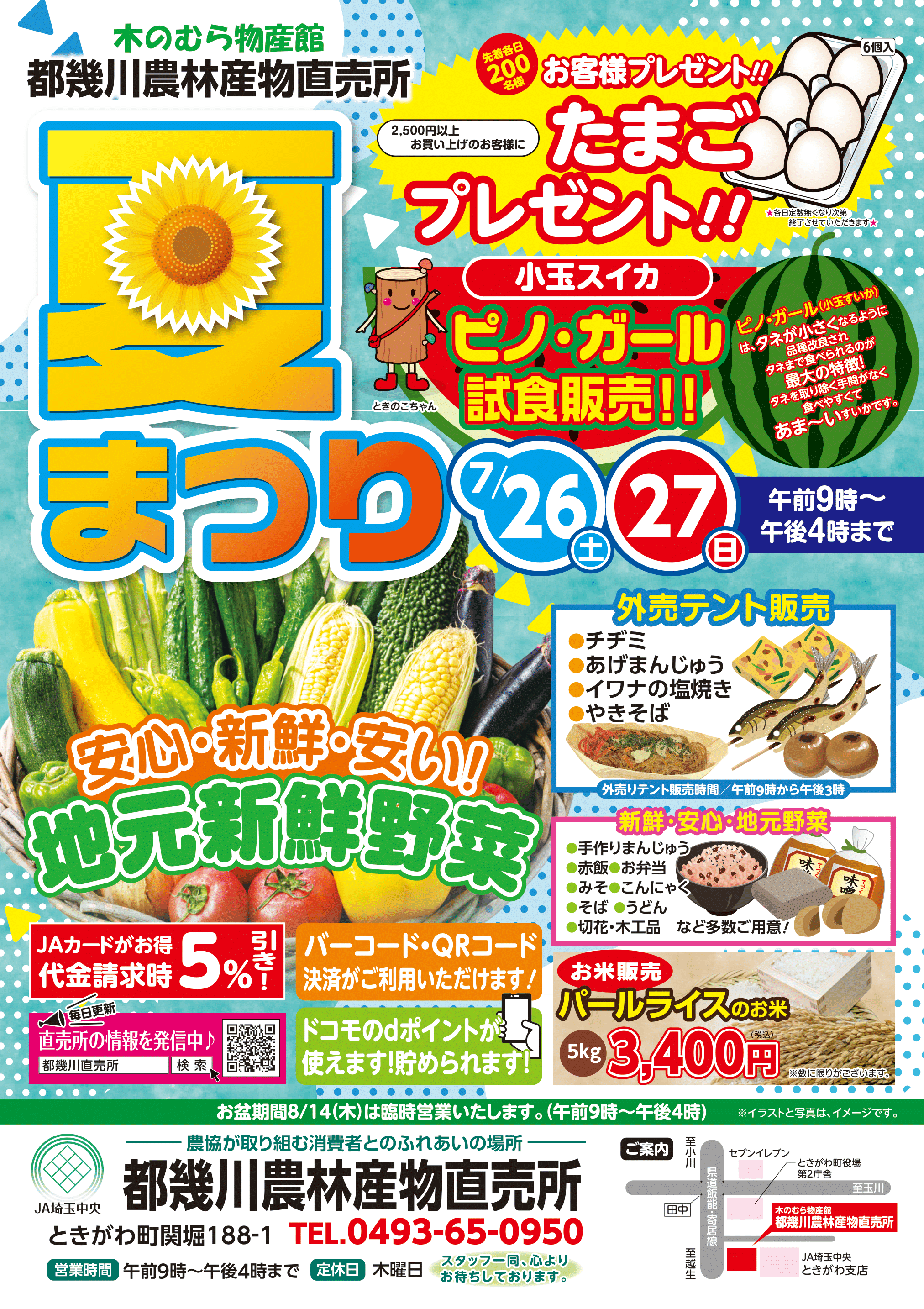 - 都幾川直売所 7/26(土)~7/27(日)「夏まつり」開催!