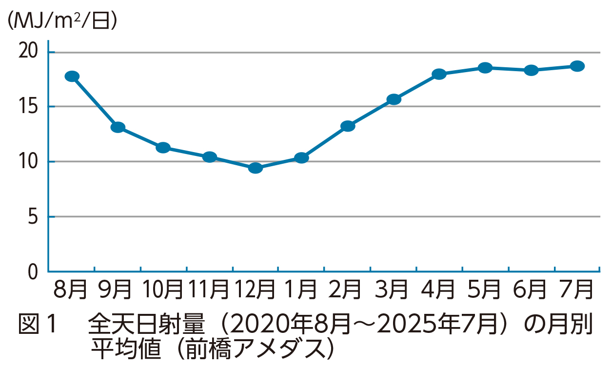 - ○春先以降(2月以降)は、日射量の増加に伴い(図1)、外気温が低くても、午前中のハウス内気温が上昇しやすくなります。
