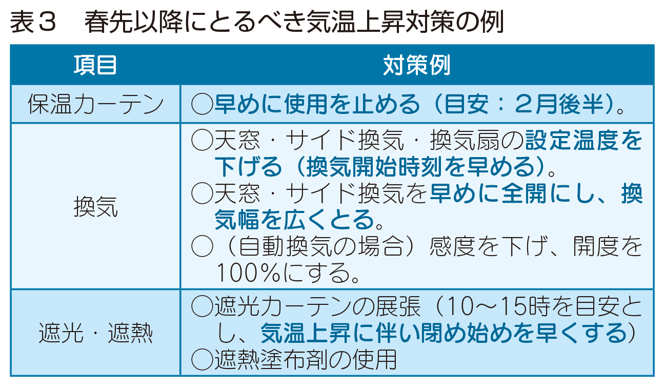 - (2)春先以降のハウス内気温上昇対策